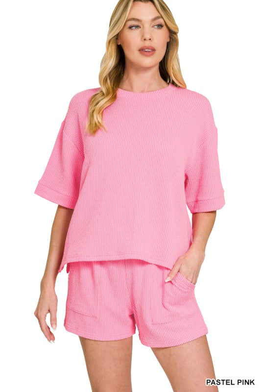 Your wear-it-all-day kind of set 💕 Throw this ribbed short set on for slow mornings, iced coffee runs, Target trips, and “I’ll just run one errand” days that turn into five. Soft, stretchy, and comfy without looking like loungewear. Comes in Capri Blue, Pinky Pink, Mocha, and Cherry Red—aka every mood.